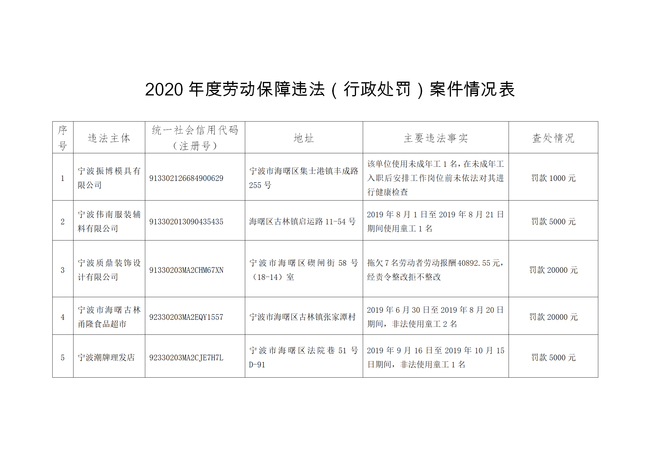 为加强对劳动保障违法行为的惩戒力度,强化社会舆论监督,促进用人单位遵守劳动保障法律、法规和规章制度,维护广大劳动者合法权益,现将区级劳动保障监察机构查处的劳动保障违法(行政处罚)案件予以公布(见附表)。