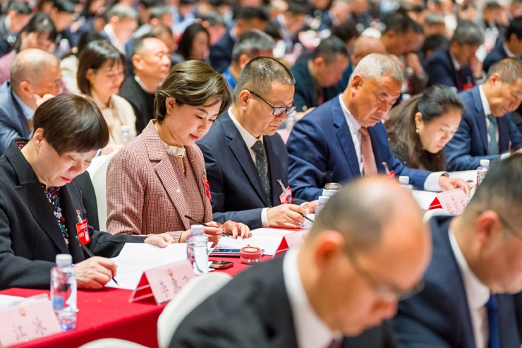 在热烈的掌声中,区长徐洪涛代表区政府向大会作政府工作报告。他说,“十四五”时期是海曙发展极不寻常、极不平凡的五年,是迎难而上、砥砺奋进取得重大突破的五年。五年来,面对错综复杂的外部形势和新冠肺炎疫情的严重冲击,面对艰巨繁重的改革发展稳定任务,区政府坚持以习近平新时代中国特色社会主义思想为指导,深入学习贯彻党的二十大和二十届历次全会精神,忠实践行习近平总书记考察浙江重要讲话精神,在上级党委、政府和区委的坚强领导下,在区人大、区政协的监督支持下,凝聚全区力量,锐意改革创新,全力攻坚克难,一以贯之推进“三比三拼三焕新”行动,斩获国家级荣誉67项,推动高质量发展建设共同富裕样板区取得积极进展,现代化滨海大都市卓越城区建设取得较好成效。
